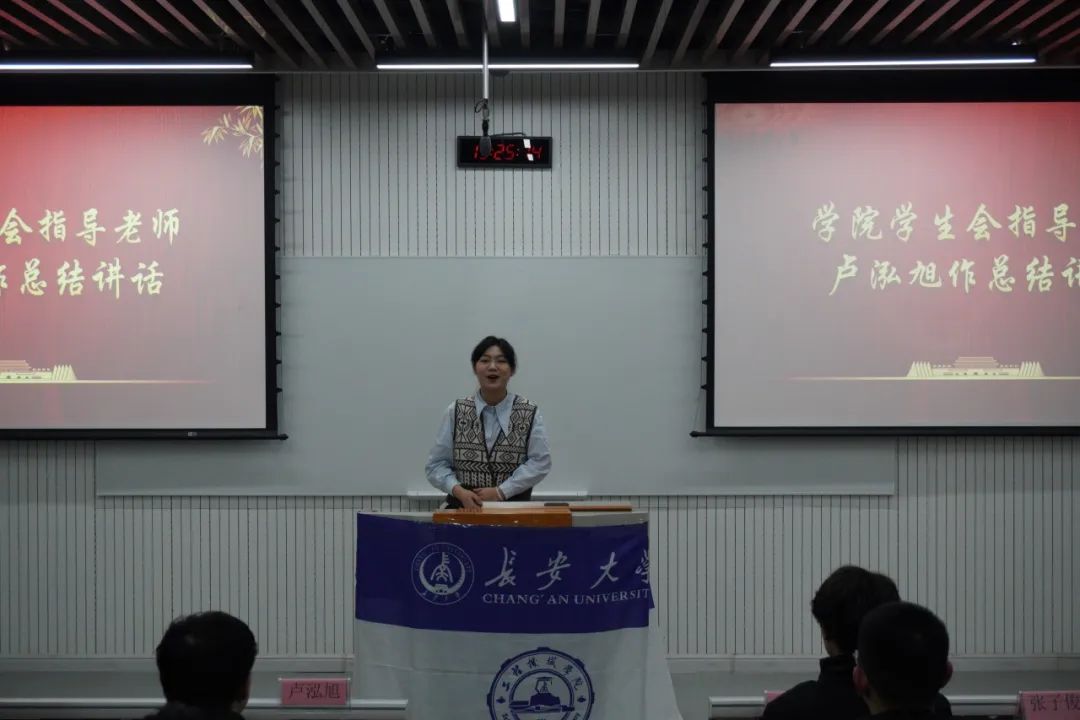 会议第三项,学生会指导老师卢泓旭作总结讲话。她首先感谢了学生会各位干部上学期的辛苦付出,肯定了大家的工作成果。同时对学生会新学期的工作提出要求:第一,学习成绩要重视,学生干部要在各个方面起到先锋模范作用,在学习方面起到正面积极的作用,为澳门娱乐城 营造良好的学习氛围。第二,活动质量有保障,各部门在开展活动前后,要开展调研工作,举办更符合学生期待的活动。第三,网络发言要谨慎,作为学生干部要提高辨别能力,网络发言要保持谨慎的态度,面对不当言论要敢于在网络发声亮剑,肃清网络空间。最后,她对各部门新学的工作规划进行了详细地指导。
