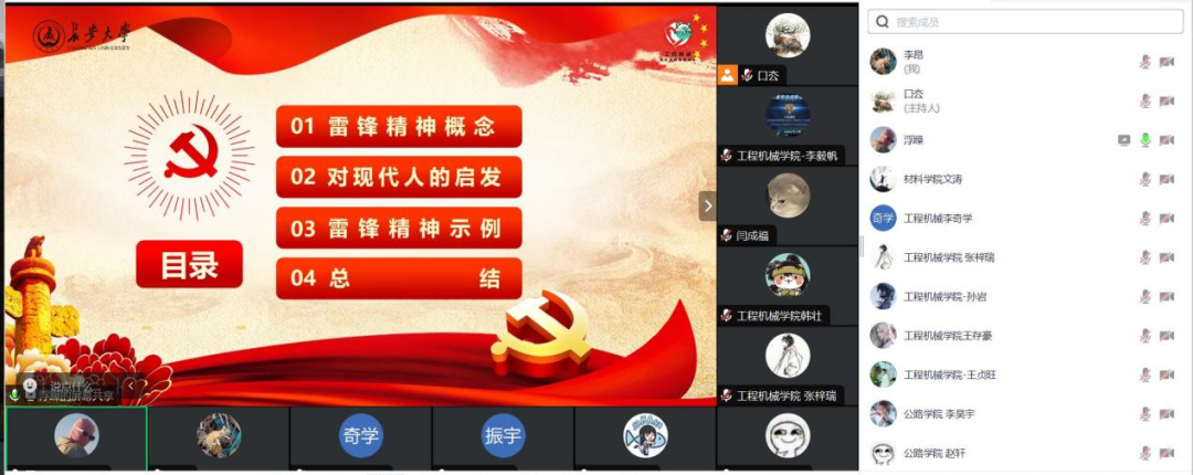3月17日晚,澳门娱乐城 青年志愿者服务队开展“弘扬雷锋精神 争做有志青年”主题宣讲活动。本次宣讲活动通过线上方式举行,由苏永锦同学担任主持人,吴凯同学担任主讲人,100余名学生参加会议。宣讲主要围绕雷锋精神的概念、时代内涵、当代意义以及机械学子开展的志愿行动等方面展开,通过生动的案例和真挚的情感鼓励当代青年大学生认真学习雷锋精神内涵,争做新时代有志青年。