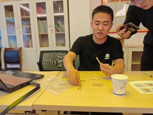 随后,景回强通过直播教学的方式带领同学们动手搭建液压升降台。在搭建过程中,景回强引导同学们依次认识了各零部件的作用,带领同学们进行升降台的拼装与固定工作。经过景回强的耐心讲解及现场老师的帮助,同学们陆续完成了液压升降台的制作。