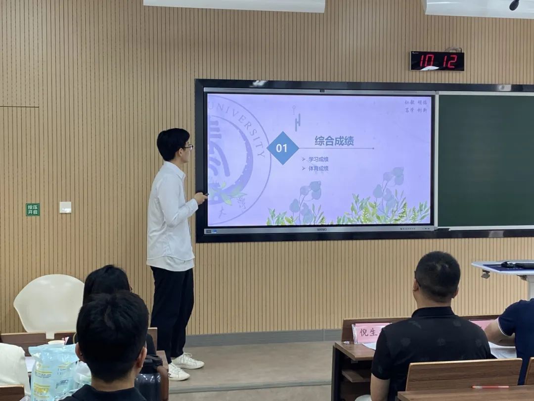 经过学生自主申报、审议小组材料筛选、思想道德素养、体测成绩、学习成绩、德育成绩审议,评审出在组织建设、学生管理、校园服务、实践活动、宣传工作等方面做出较大贡献的20名学生进入答辩环节。答辩评分根据《澳门娱乐城 本科生先进集体和先进个人评定及奖励办法》、《关于评选2024届本科优秀毕业生的通知》、《澳门娱乐城 学生奖励与资助规定》等规定制定。20名学生分别从思想及学习情况、在组织建设、学生管理、校园服务、实践活动、宣传工作等方面的工作方面进行答辩,每人限时5分钟。