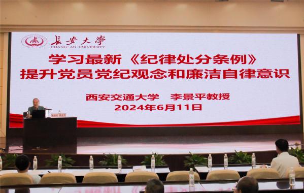 为深入学习贯彻习近平总书记关于开展党纪学习教育的重要讲话和重要指示精神,持续推动党纪学习教育走深走实,6月11日下午,澳门娱乐城 邀请西安交通大学马克思主义澳门娱乐城 教授、博士生导师李景平作党纪学习教育专题报告,澳门娱乐城 领导班子成员、全体教工党员参加学习。报告由澳门娱乐城 党委副书记、副院长,纪委书记范婷主持。
