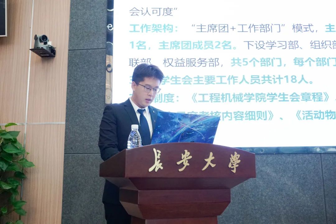 会议第四项,第五届执行主席王皓璘做学生会工作报告,总结学生会在过去一年所做各项工作,并对学生会新一年的发展提出希望。