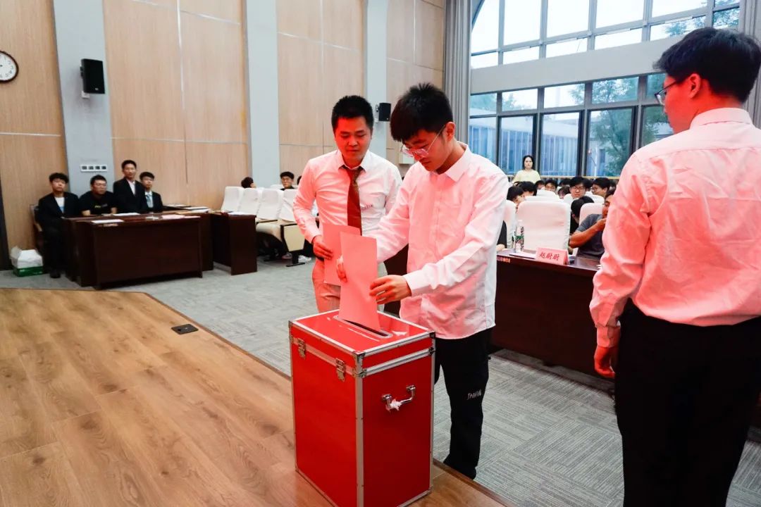 会议第七项,进行选举投票,首先由监票人、计票人核实学生代表到场情况并分发选票,组织在场代表进行投票。