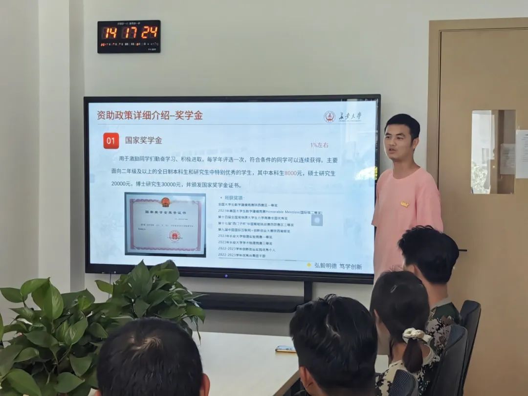 紧接着,2022级本科生李响向大家分享了关于奖学金申请、学习方法和科研竞赛等方面的经验,希望大家在保持优异学业成绩的同时,能积极参加科研实践、培养兴趣爱好、结交知心朋友,度过美好而有意义的大学生活。会议最后,新生们就社团生活、时间规划等方面与学长进行了深入交流,学长用自己的亲身经历,为新生们解答了疑惑,并鼓励新生们要珍惜大学时光,做有意义的事情。