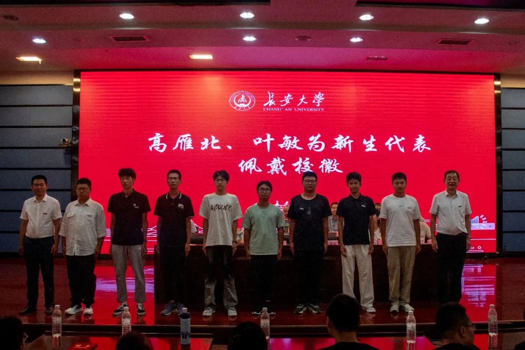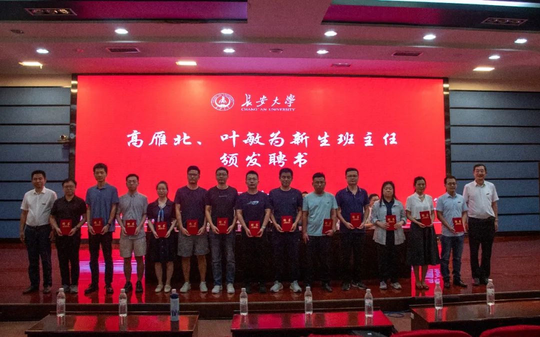 澳门娱乐城 党委书记高雁北、院长叶敏为新生班主任颁发聘书,并为新生代表佩戴校徽。