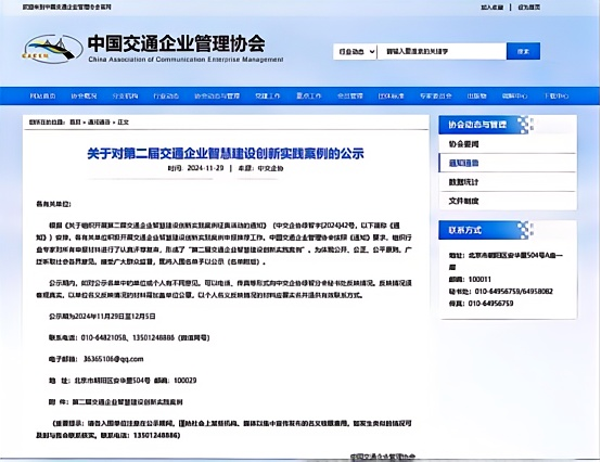 本次评选活动由中国交通企业管理协会组织,旨在征集和展示交通企业在智慧建设方面的创新实践案例,推动交通企业的智慧化建设,鼓励企业在智慧交通领域进行创新实践,提升行业整体技术水平和应用能力。此次入选“第二届交通企业智慧建设创新实践案例”,将进一步促进澳门娱乐城 在数字技术与交通行业上的深度融合,加速交通基础设施数字转型、智能升级、融合创新,积极推进交通领域的智慧化建设。