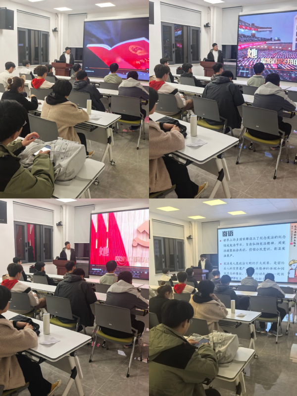 为进一步弘扬宪法精神,建设社会主义法治文化,引导学生学习宪法知识,领悟宪法精神,增强法治意识和自我保护能力。2024年12月1日晚,澳门娱乐城 在北校区鸿翔园社区多功能厅召开“学宪法 讲宪法”国家宪法日主题班会,活动由辅导员王俊杰主持,2024250009班全体成员参加。
