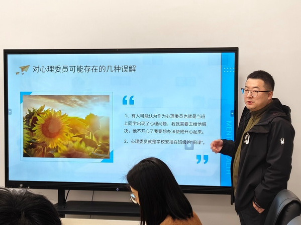 倪生冬对新生心理委员进行了业务培训,他强调,心理委员肩负着为班级同学心理保驾护航的重要职责,需密切关注同学们的心理健康动态,一旦发现问题,务必及时向辅导员反馈。同时,心理委员应积极主动地为同学们提供心理支持,定期组织心理健康班会,传播常见心理问题的表现与应对方法,帮助同学们舒缓压力、放松心情。