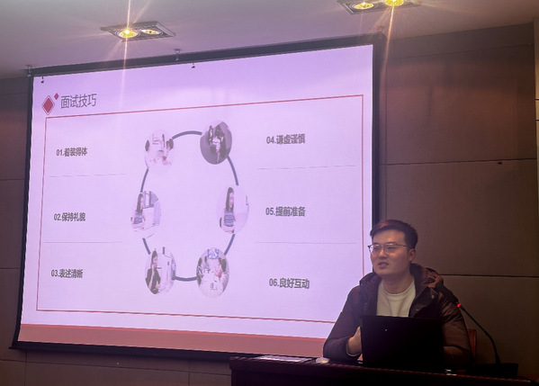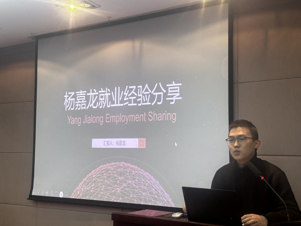接着,杨嘉龙给大家分享了自身在求职过程中的一些心得,他强调了关注秋招时间节点的重要性,特别是“金九银十”这一求职高峰期,许多企业会集中发布岗位并进行校园招聘。他建议同学们要充分利用这一时间段,积极投递简历,参加各类招聘活动。同时,他还提醒同学们在求职过程中要学会取舍,明白“鱼与熊掌不可兼得”的道理,明确自己的职业规划和目标,结合个人兴趣、专业背景和市场需求,做出最适合自己的选择。