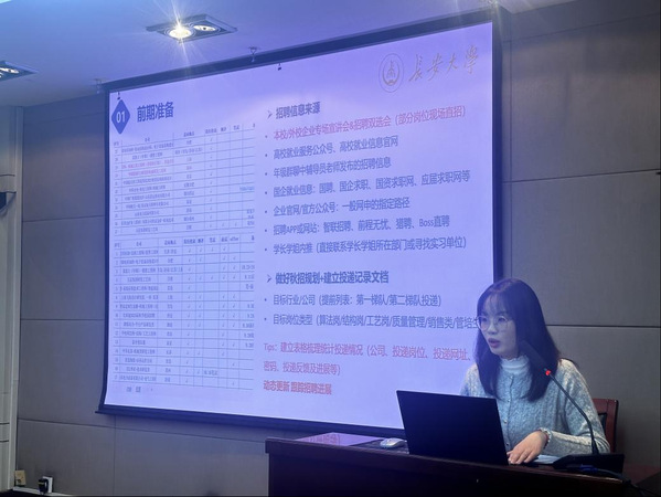 本次分享会邀请到了董博、赵倩、杨嘉龙三位具有丰富求职经验的2022级研究生。董博以“就业择业的智慧之旅”为主题,详细阐述了求职过程中的四个关键要点:第一,应准备简洁有力、清晰直观的简历,准确展示个人优势。第二,求职前应进行深入的自我探索,明确职业兴趣和方向,并通过实习来验证和提升自己,为职业发展打下基础。第三,要拓宽求职视野,使用招聘APP、企业官网和校园招聘会等多种渠道获取高质量职位信息。第四,面试时的准备至关重要,包括着装、言谈举止和与面试官的沟通,都需要精心准备,以展现最佳形象。