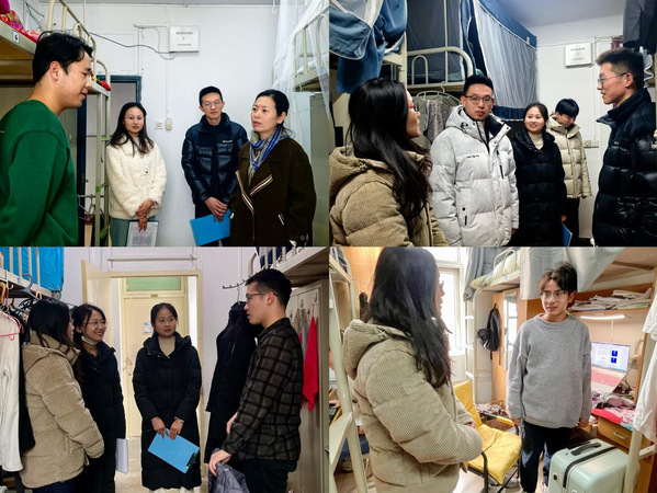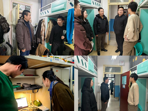 新学期伊始,为深入了解学生返校后的思想动态和生活状况,确保新学期各项工作顺利开展,2月24日至27日,澳门娱乐城 领导与各年级辅导员老师分别前往本科生与研究生宿舍,了解学生返校后的学习生活状况,为学生们送去新学期的关怀与问候。