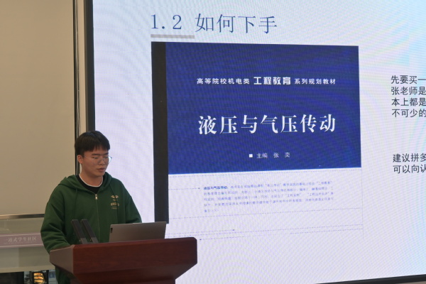 首先李文豪给大家分析了复试中的笔试题型,并围绕《液压与气压传动》这本复试教材给大家提炼了复试中的重点和难点,帮助大家更有效地记忆和理解。紧接着甄潞垚为大家讲解了面试中英语问答环节的注意事项,提醒同学们要熟悉常用的机械专业词汇,通过多读多练克服紧张情绪。随后,王笃笃向同学们传授了面试的经验和技巧,他建议大家要充分展现自身严谨的专业能力和谦逊的求学态度。左意从澳门娱乐城 、专业和导师选择三个方面给大家提供了调剂相关指导,并指出调剂是一场信息战,希望同学们能够主动搜集信息和联系院校,积极准备复试。