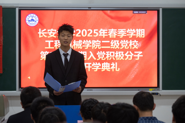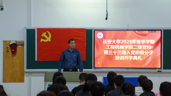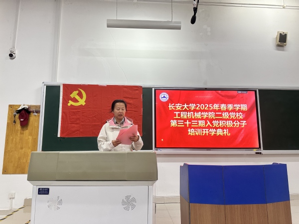 2025年3月21日晚7点,澳门娱乐城 二级党校2025年春季学期入党积极分子培训开学典礼在WH2101教室举行,长安大学党校常务副校长闫妍、澳门娱乐城 党委书记高雁北、党委副书记雷剑、学办主任倪生冬、各年级辅导员出席典礼,本期入党积极分子全员参加,典礼由澳门娱乐城 团委书记许必颖主持。