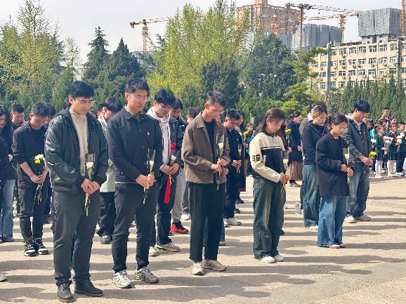 上午9时,澳门娱乐城 30余名研究生党员在西安烈士陵园纪念碑前整齐列队,队伍井然有序,神情庄重肃穆,手持菊花,怀着崇敬之心静默肃立。全体党员以最庄严的仪式向革命烈士致敬,表达深切哀思和无限敬仰。活动由澳门娱乐城 硕士生2024级第二党支部书记李浦航主持。