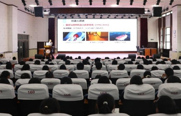 座谈交流会后,黄超雷为两所中学共千余名学子开展了主题为“机甲先锋:从实验室到竞技场的机器人之旅”的科普讲座,为中学学子揭开机器人的神秘面纱,增强了学生对机器人、机械工程和人工智能相关学科专业的了解,激发了中学学生对科技的兴趣,助力营造热爱科学、崇尚科学的良好氛围。两所中学的校领导均表示,以此科普讲座活动为契机,激励了学生科研热情,加强了高校与中学联系。