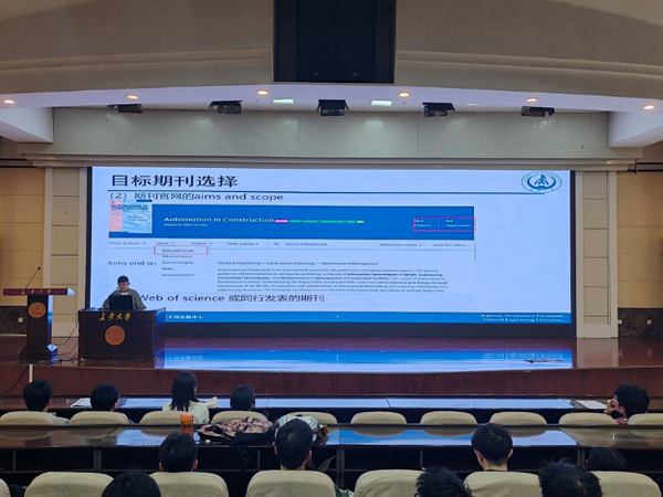 在论文写作指导中,李宏伟以《Automation in Construction》期刊上发表的论文为例,解析摘要、引言、方法及结论的写作要领,并强调论文全文应构建以创新为核心的闭环逻辑体系。他指出,摘要需直指核心问题、凝练方法框架、凸显创新价值、展现突破成果;引言部分要通过研究背景阐明学术价值、研究现状梳理领域进展、研究缺口定位突破空间、研究贡献彰显创新维度;结果要充分验证所提方法和创新,结论应与摘要呼应,阐明填补的学术空白并展望未来,他特别指出,图表设计需科学合理配色、信息层级分明、标注精准简练。