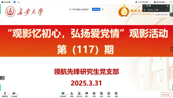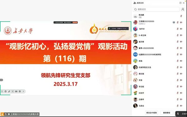 为扎实开展深入贯彻中央八项规定精神学习教育,深入领会全国两会精神,强化青年党员党性修养与使命担当,澳门娱乐城 领航先锋研究生党支部开展第116-118期“观影忆初心 弘扬爱党情”观影活动,引导党员筑牢信仰之基、践行报国之志,在学思践悟中展现新时代机械学子的责任担当。