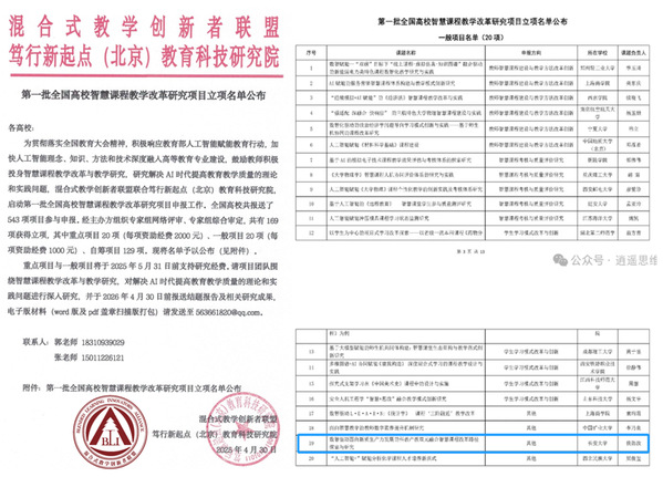 近日,第一批全国高校智慧课程教学改革研究项目立项名单正式公布,澳门娱乐城 侯劲汝老师成功获批立项。此次立项由混合式教学创新者联盟联合笃行新起点(北京)教育科技研究院发起,旨在推动高等教育教学模式创新与改革。全国高校共报送543项项目参与申报,经主办方组织专家网络评审、专家组综合评审,侯劲汝凭借其在智慧课程教学领域的深厚积累与创新实践脱颖而出,成功获批。
