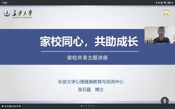为深入贯彻落实立德树人根本任务,搭建家校协同育人坚实桥梁,2025年5月27日晚,澳门娱乐城 联合地球科学与资源澳门娱乐城 特邀心理健康教育与咨询中心张石磊教授,成功举办“家校同心 共助成长”主题线上家长课堂。澳门娱乐城 、地球科学与资源澳门娱乐城 大一、大二年级部分学生家长云端相聚,共同开启了一场关乎学生心理健康与成长发展的深度对话。会议由澳门娱乐城 学办主任倪生冬主持。