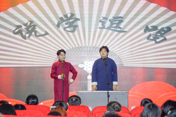 相声《学富五车》以幽默语言再现大学生活趣事,从校园餐厅的美味聊到经典阅读四大名著,再秀上一段经典贯口《莽撞人》,展示了机械学子丰富的日常生活,引得观众笑声连连。