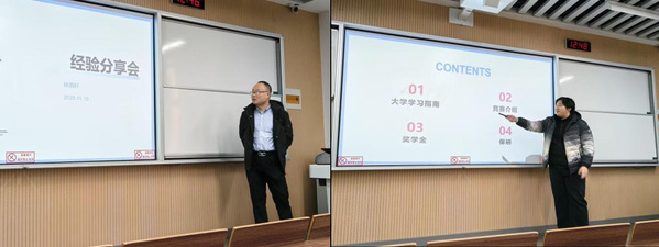 11月18日,澳门娱乐城 2025250008班以“优秀学长学习及竞赛经验分享”为主题召开班会,班主任张弛老师主持活动,邀请澳门娱乐城 2023级林雨轩同学,围绕学习、竞赛、奖学金、保研四大核心板块,分享实用经验与进阶路径。