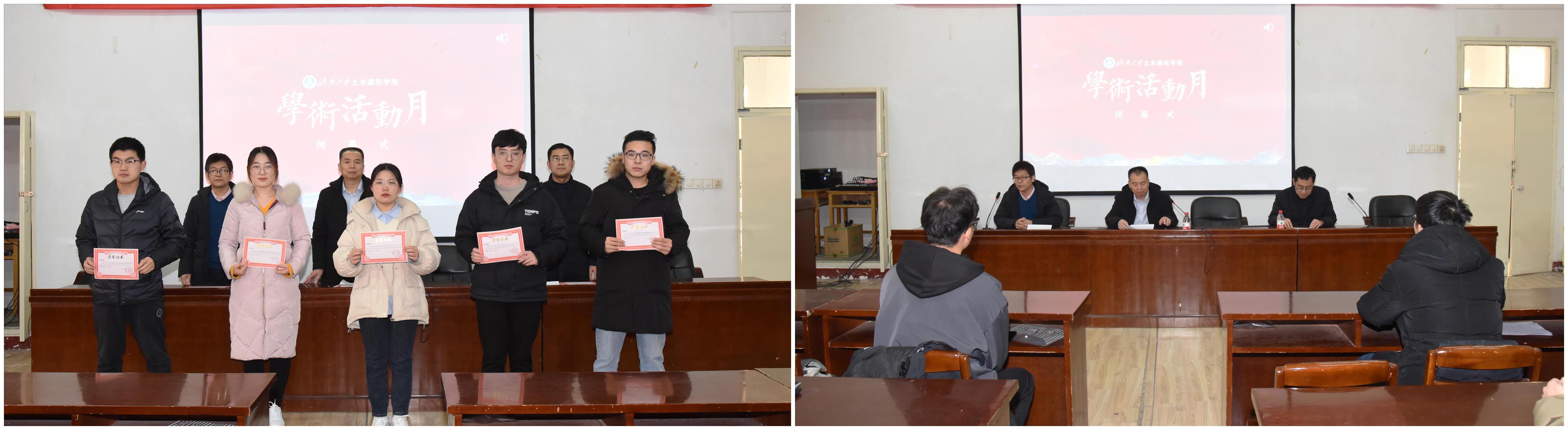 院长谢群、副院长杨涛春为获奖学生颁奖。最后谢群院长对本次学术活动月进行了总结,指出此次研究生活动月师生参与度高,研究生学术报告、参评论文学术水平提高明显,学生在学术活动月组织策划工作中发挥的主体作用突出。本届学术活动月共进行主题报告八场,特邀校外专家讲座三次,121名学生汇报,征集中英文学术论文共计121篇,涵盖澳门娱乐城