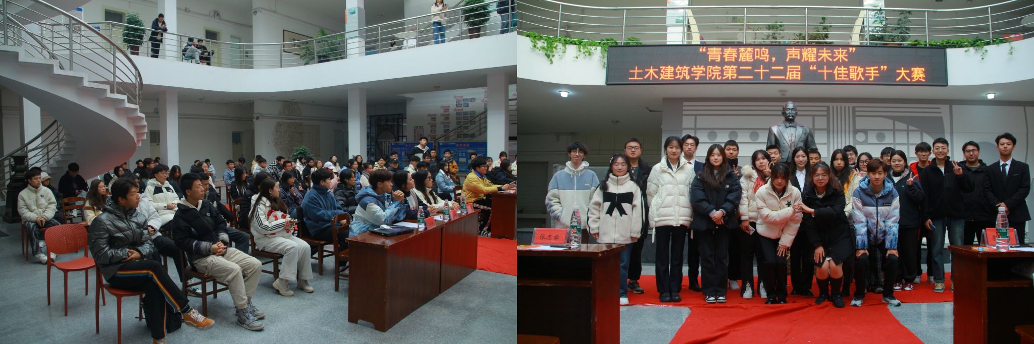 各年级踊跃报名参与。比赛分为初赛和决赛两部分。初赛环节,选手们通过自选曲目进行比拼,经过激烈角逐,二十位选手脱颖而出,晋级决赛。决赛环节,选手们展示出不俗的实力,参赛曲目涵盖了《济水之南》等激情四射的说唱、《悟空》等情款款的抒情、《新贵妃醉酒》等高亢婉转的民族旋律,用饱满的热情和动人的声音诠释着青春的风采。经过激烈角逐,最终评选出魏亿桐、任文祎等十佳歌手。活动大厅挤满了观众,掌声和喝彩声一次又一次将氛围推向高潮。