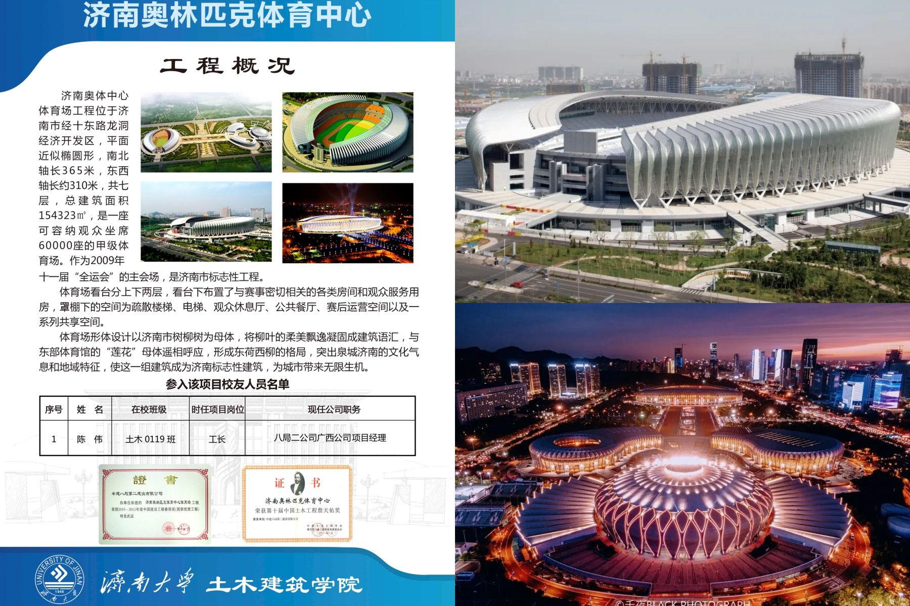 济南奥体中心体育场工程位于济南市经十东路龙洞经济开发区,平面近似椭圆形,南北轴长365米,东西轴长约310米,共七层,总建筑面积154323㎡,是一座可容纳观众坐席60000座的甲级体育场。作为2009年十一届“全运会”的主会场,是济南市标志性工程。
