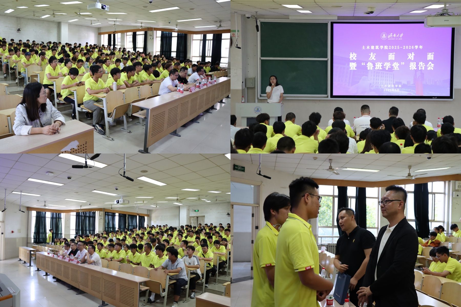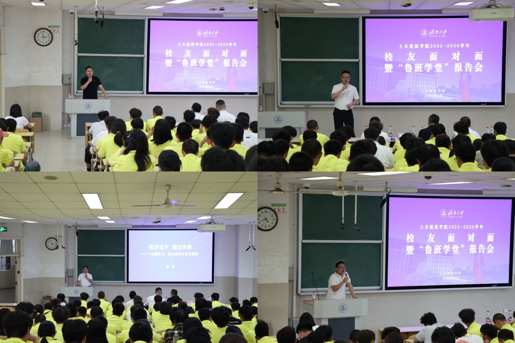 成功举办校友面对面暨“鲁班学堂”报告会。活动特邀孙宗超、张鹏、杨林、田冬林四位在土木建筑领域深耕多年的优秀校友返校,与 2025 级全体新生共话成长历程、分享行业经验。澳门娱乐城