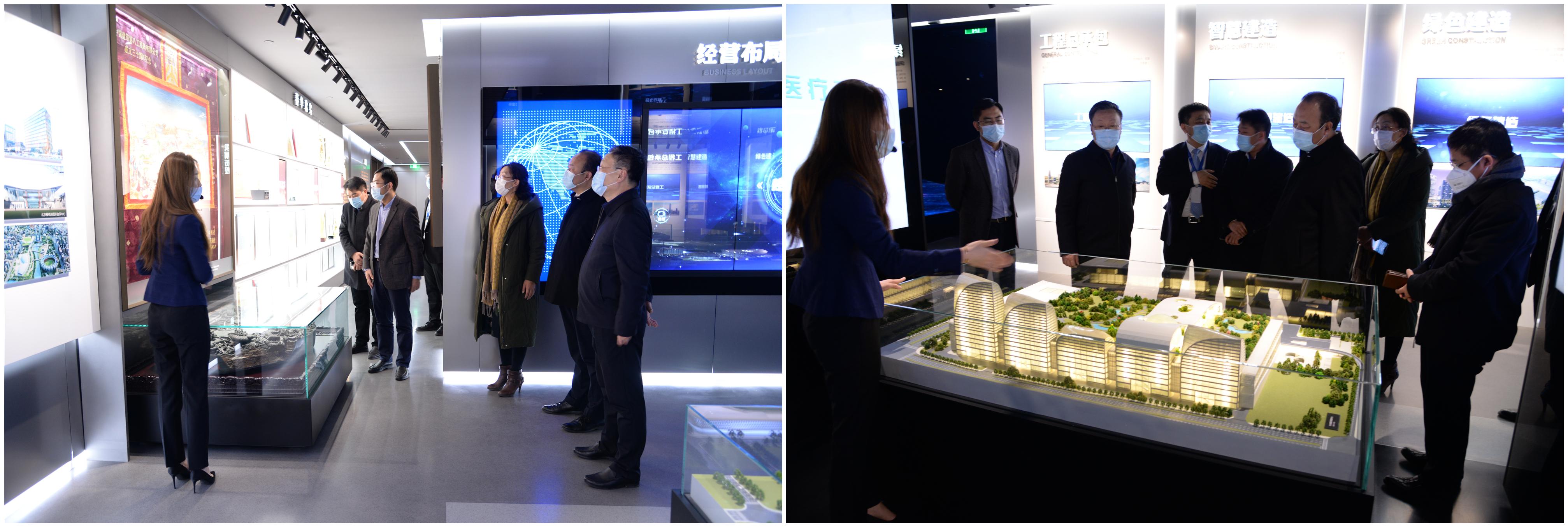20日上午,张士强校长一行参观了中建八局“军魂匠心 追梦前行”文化展厅。该文化展厅是中建八局品牌形象的展示窗口和文化传承的教育基地。文化展厅面积500平米,分为“筑魂”、“筑基”、“筑梦”三个展厅,以图文介绍、实物展陈、视频展播、沉浸式体验、工程模型、情景互动等多种形式,展现了中建八局的过去、现在和未来。张士强校长一行在讲解员的讲述下,了解了中建八局“令行禁止、使命必达”的铁军文化,进一步感受到中建八局“筑于国家重器之使命,筑于大国崛起之征程”的央企担当。张士强校长详细了解了“智慧建造”和“绿色建筑”领域的发展现状及对行业发展的影响,要求澳门娱乐城