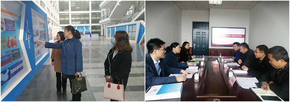 党委副书记赵晓珂表示热烈欢迎,围绕一体化育人体系改革实践和学生党建工作,就基本思路、建设举措、建设成效、特色工作等方面进行了详细介绍。 随后,双方就如何协同育人力量、统筹育人平台、学生党员发展、党员管理与培养等方面展开热烈研讨。