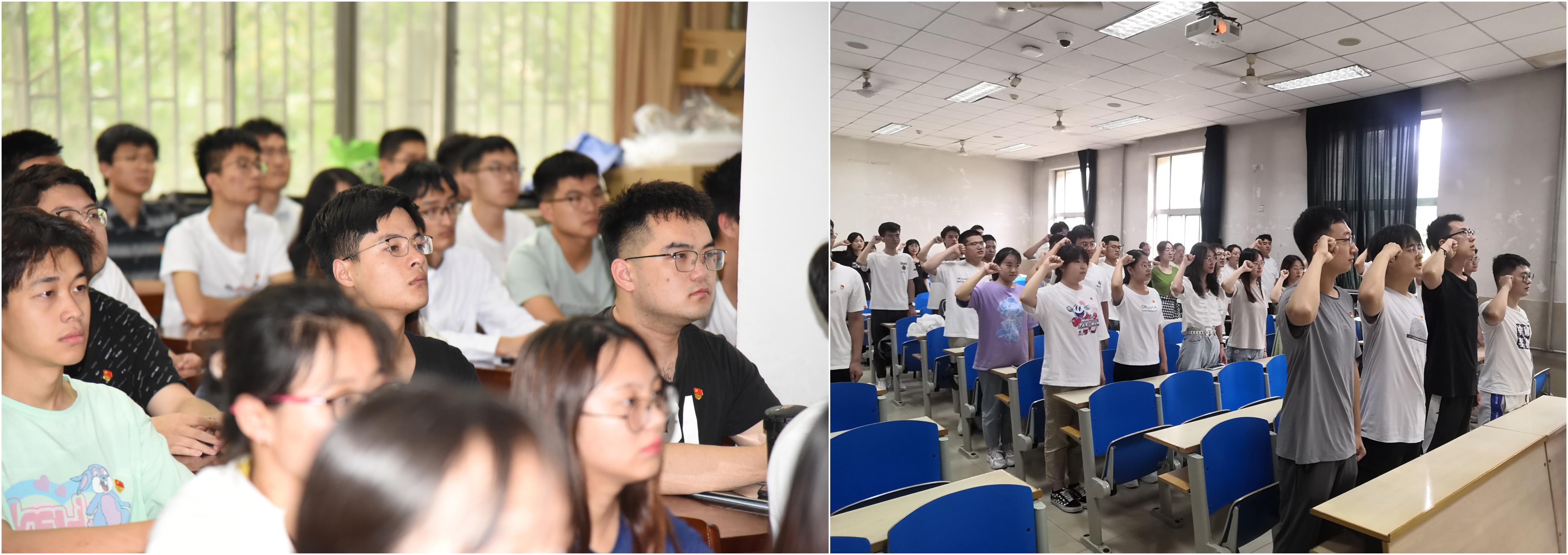 优秀党员获得者白雪飞老师领誓,全体党员高举右拳,面向党旗庄严宣誓,为共产主义奋斗终身,随时准备为党和人民牺牲一切,永不叛党!满怀热情的誓言回响在八教,激荡着每一名党员的心胸。
