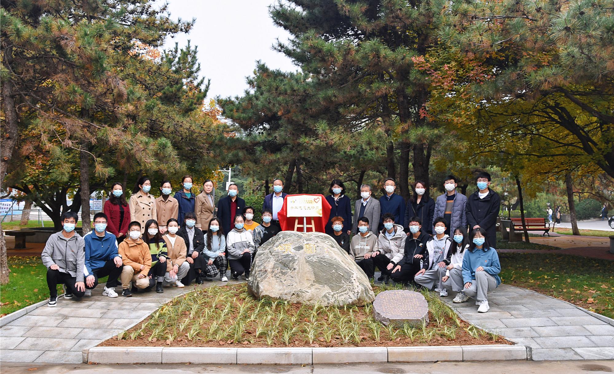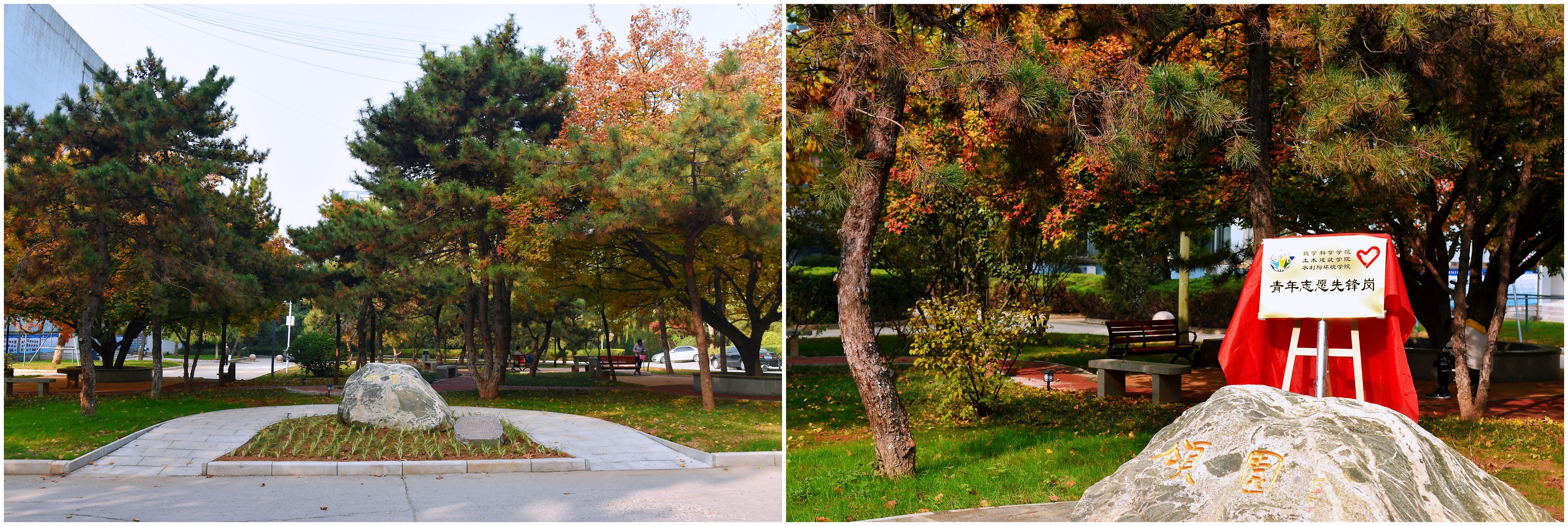 退休工会主席张洪安老师带领青年志愿者亲手栽种的。如今经过重新规划修建,园内的美景吸引了师生前来休闲读书。为了传承青年志愿者精神及校友对母校的感恩之心和颂扬之情,由数学科学澳门娱乐城