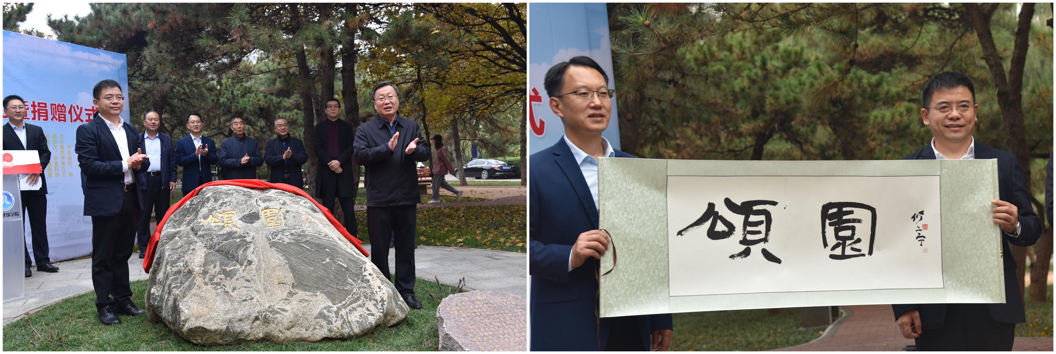 文化中心主任于剑波亲自题写的“颂园”书法作品。宋修国校友感谢母校的培养,同时感谢母校在73周年华诞之际给他提供回馈母校的机会。多年以来,宋修国校友时刻关注母校的发展,希望能够尽绵薄之力,帮助修建颂园,为母校师生提供一个学习、诵读之所,同时为母校校园的美丽尽一份力。宋修国校友谈到,他毕业之后进行创业取得的成绩都得益于母校的教育与培养,他会继续以校企合作的形式与母校共同发展,并祝愿母校越来越好,也希望学弟学妹们能够加入中直科创,与他携手共创事业。