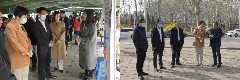 党委书记刘效东,院长谢群,党委副书记、副院长朱小燕到场了解招聘情况并与用人单位和毕业生交流。