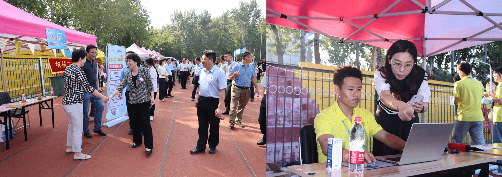 党委书记李超,党委副书记、副院长朱小燕,各年级辅导员来到报到现场,探望前来报到的新生及家长,慰问迎新的师生志愿者。