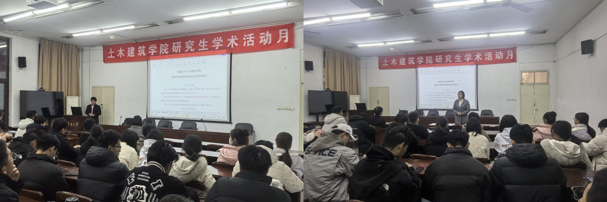 的奖学金政策,包括研究生学业奖学金、国家奖学金评审办法。在讲解过程中,杨涛春院长特别针对学生们较为关注的学习成绩要求、学术科研成果、论文发表、国家专利获取等重点内容进行了深入阐释,并结合以往评选过程中出现的常见问题和注意事项进行了详细说明,使同学们对奖学金政策有了更为清晰、全面的认识。
