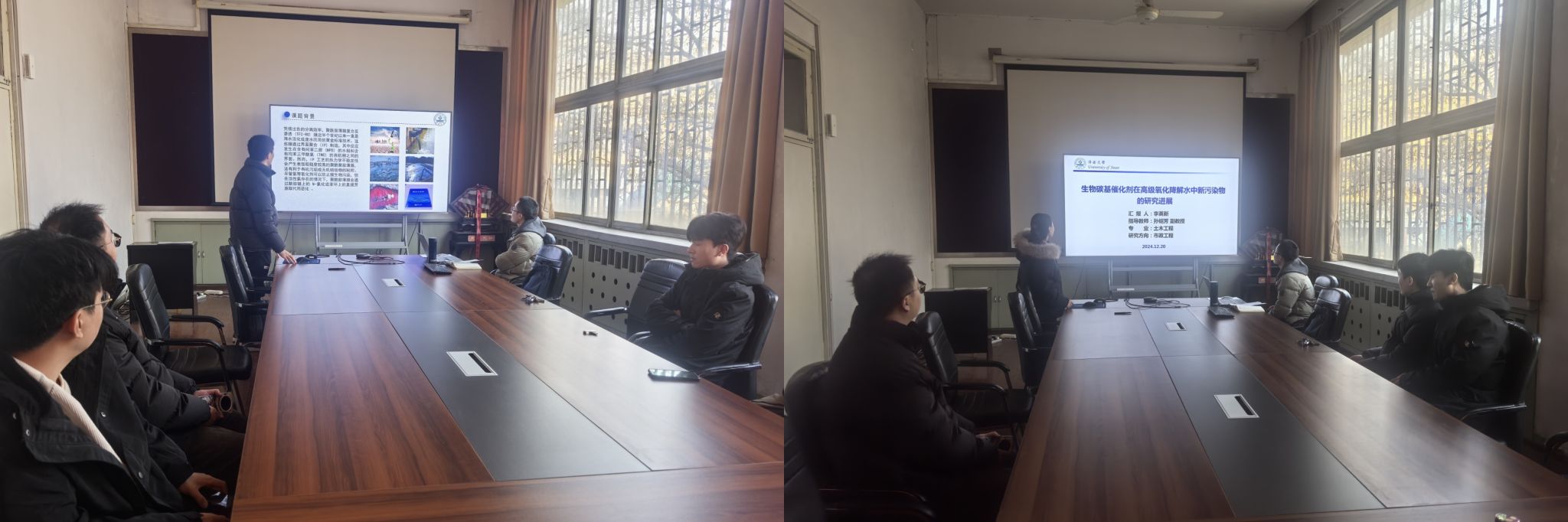颜淑鑫以“关于去除水中嗅味物质的研究”为题,从嗅味物质的种类与来源、现有去除方法及其作用机制、影响去除效果的因素以及各类方法的综合应用等多方面展开了深入探讨。王帅以“三维电催化粒子电极研究进展”为题,探讨改进制备方法以优化纳米颗粒特性,开发新型复合材料来增强电极综合性能,同时精心设计反应器结构,改善电极与介质间的界面状况。鲁大磊以“反渗透技术对消毒副产物的去除效果、机理及影响因素研究”为题,深入探讨其去除效果、作用机理以及影响该技术效能的各类因素。闫琪雅以“配体调控过渡金属活化过硫酸盐降解新污染物的效能和机理”为题,阐述配体对过渡金属活性的影响、活性物种的生成与转化机制以及污染物降解途径等方面,揭示了该体系在环境修复领域的重要潜力和科学内涵。