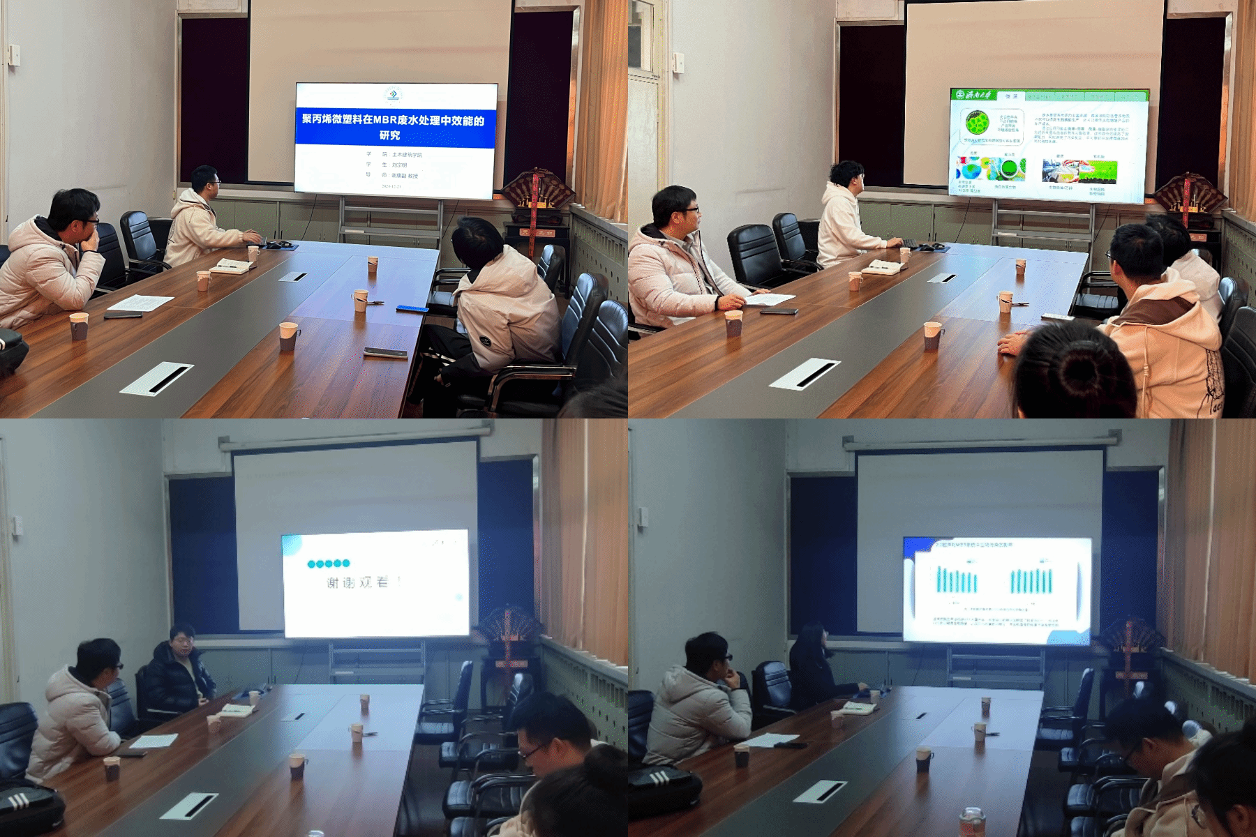 刘开元以“微藻二元培养对污水处理及资源化利用的综合方法”为题,通过理论分析、和对外文文献的阅读学习和大家分析了微藻处理的特点,重点和大家分析了菌藻和藻藻的优缺点;刘宗明以“流域微塑料赋存特征及风险评价研究进展”为题,详细阐述了目前国内外的一些研究成果并且结合自己的实验研究分析了这个领域的研究现状;钱锟以“磁场对低碳氮比废水中的反硝化细菌的生物脱氮特性研究”为题聚焦于磁场对低碳氮比反硝化细菌脱氮的影响,介绍了磁场对其的影响通过多方面分析,为大家讲解分析,内容丰富新颖;张守成以“Ce/硅藻土催化臭氧氧化医药废水中左氧氟沙星机理的研究”为题分享了Ce/硅藻土催化处理医药废水中的左氧氟沙星的机理和研究的意义。