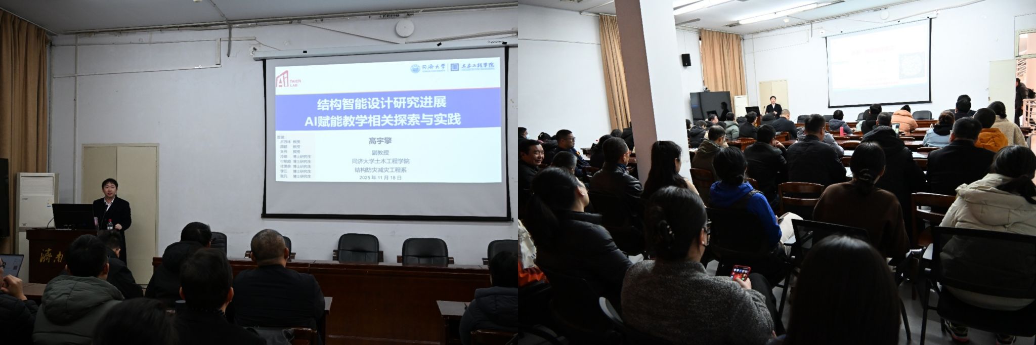 11月18日下午,“智赋教学”专题报告顺利举行。澳门娱乐城 特邀同济大学土木工程澳门娱乐城 高宇擎副教授莅临主讲,围绕人工智能技术在土木建筑领域的前沿研究动态与教学应用实践展开深度分享。澳门娱乐城 全体教师参会聆听,院长谢群主持本次报告。