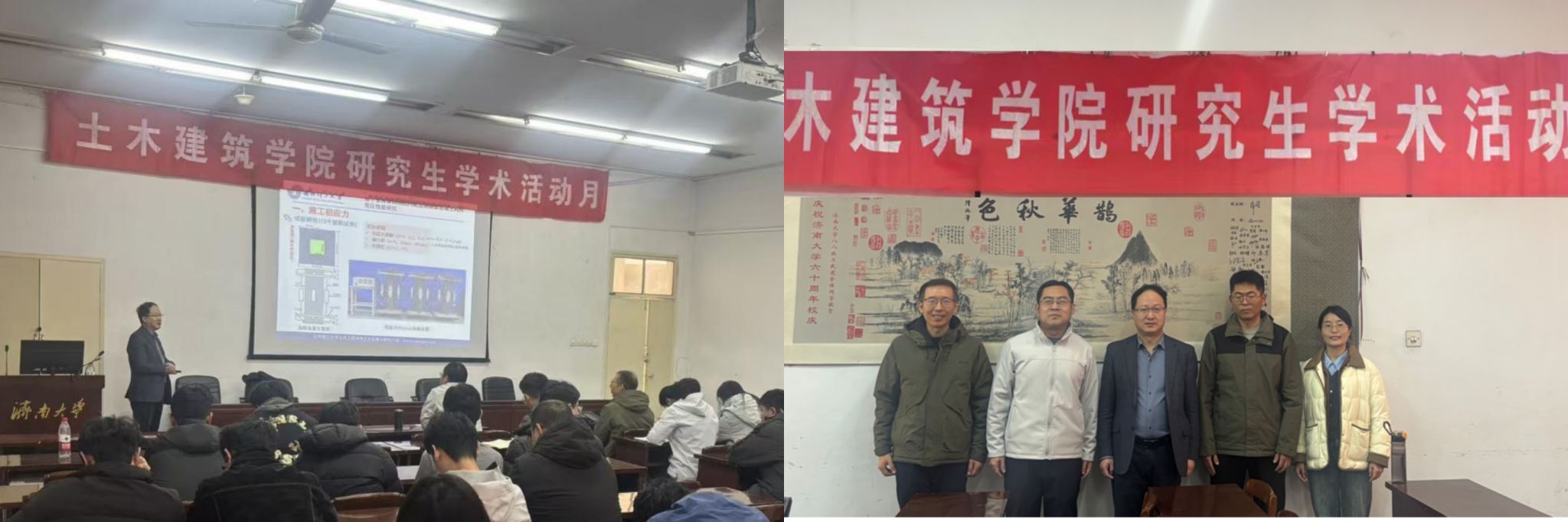 报告会上,王文达教授首先向大家介绍了自己的科研团队及研究方向和研究领域,随后王教授就内配型钢钢管混凝土构件基本力学性能的研究进展作了讲解。王教授提出了基于内配型钢钢管混凝土构件的相关实验方案,详细分析了各项试验数据,通过相关实验流程与数据讲解了全生命周期的内配型钢钢管混凝土构件的受压性能,以及内配型钢钢管混凝土柱的耐火性能。最后王文达教授与参会师生进行了深入探讨和交流,拓展了同学们对相关专业学科前沿的认知。