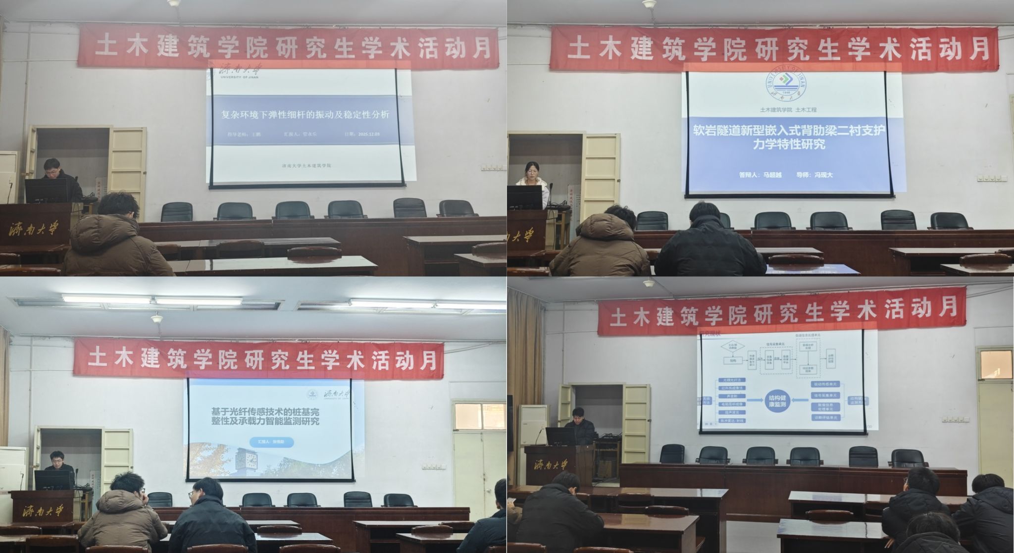 第十二届研究生学术活动月第二场学术沙龙于12月3日在8教223举行。本次学术沙龙由韩毅老师主持,土木工程专业的十六位研究生做了学术报告,我院相关专业师生参加了活动。
