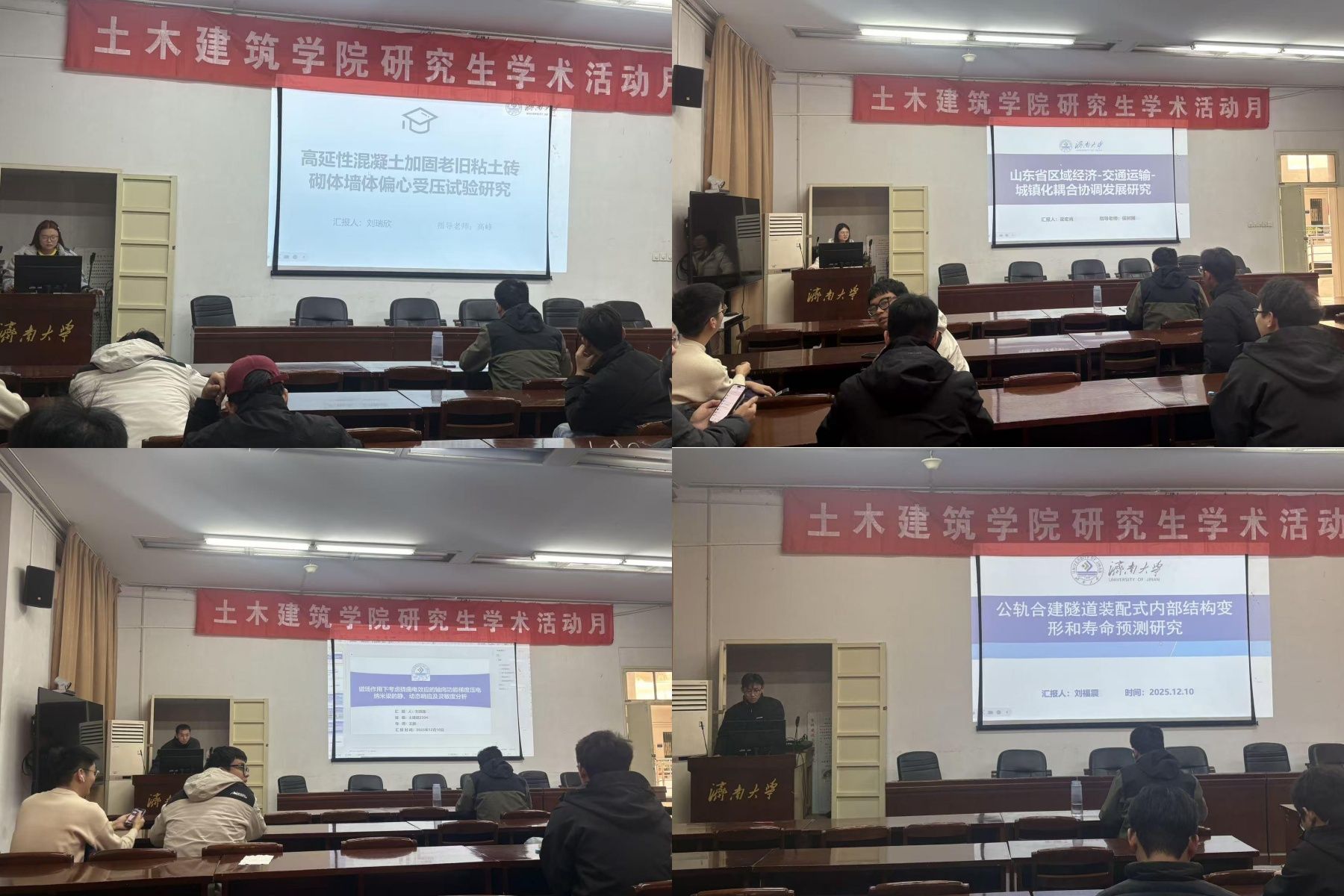 王文博介绍老旧混凝土空心砌块墙体增韧加固力学性能试验研究。为学术提供了新的思路,为实际做出了新的解决方案。