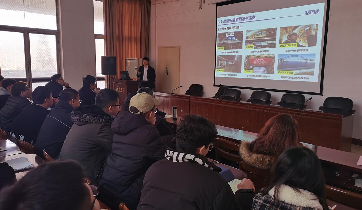 李利平教授报告主题为“高端智能盾构探索与泉域地铁安全建设“,李教授以当前济南地铁修建为切入点,介绍了我国当前盾构施工面临的难题挑战以及泉域地铁建设的关键技术。提出通过对盾构机进行智能化改进,采用巡检机器人、勘察新技术、填充新材料等一系列方法来解决难题挑战。同时,李利平教授对未来的发展趋势做出展望,主要是通过人工智能、AR、VR等技术与实际建设相结合,使计算模拟更加逼真准确、地铁建设更加简洁快速。报告结束后,李利平教授同广大师生进行了交流,整个活动内容丰富具体,学术氛围浓厚,让在场的师生受益匪浅。