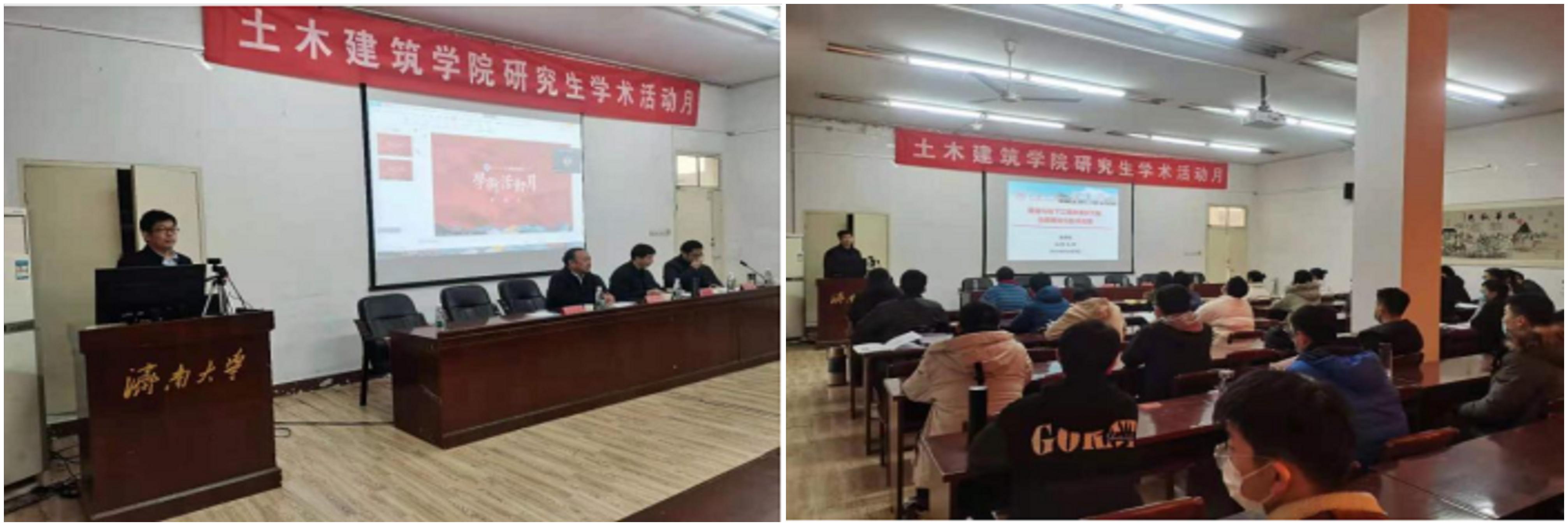 院长张庆松老师做学术报告。开幕式分三个环节进行:首先,杨院长宣布开幕式开始,并对到来的领导和专家进行介绍;随后,谢院长对本次活动致辞,提出学术活动月从2014年开始至今已举办多次,从活动之中看到了学生对于学术积极的态度以及学生在各个方面的创新,并提出几点建议:“第一,创新是每个研究生应该具备的能力,只有不断创新才能取得有效的成果。第二,探索是发挥个人所具备能力的一种方式,只有拥有不断探索的精神才能发现问题、解决问题。第三,新的灵感,只有不断查阅文献才能获得新的灵感。”最后,由张院长做学术报告。