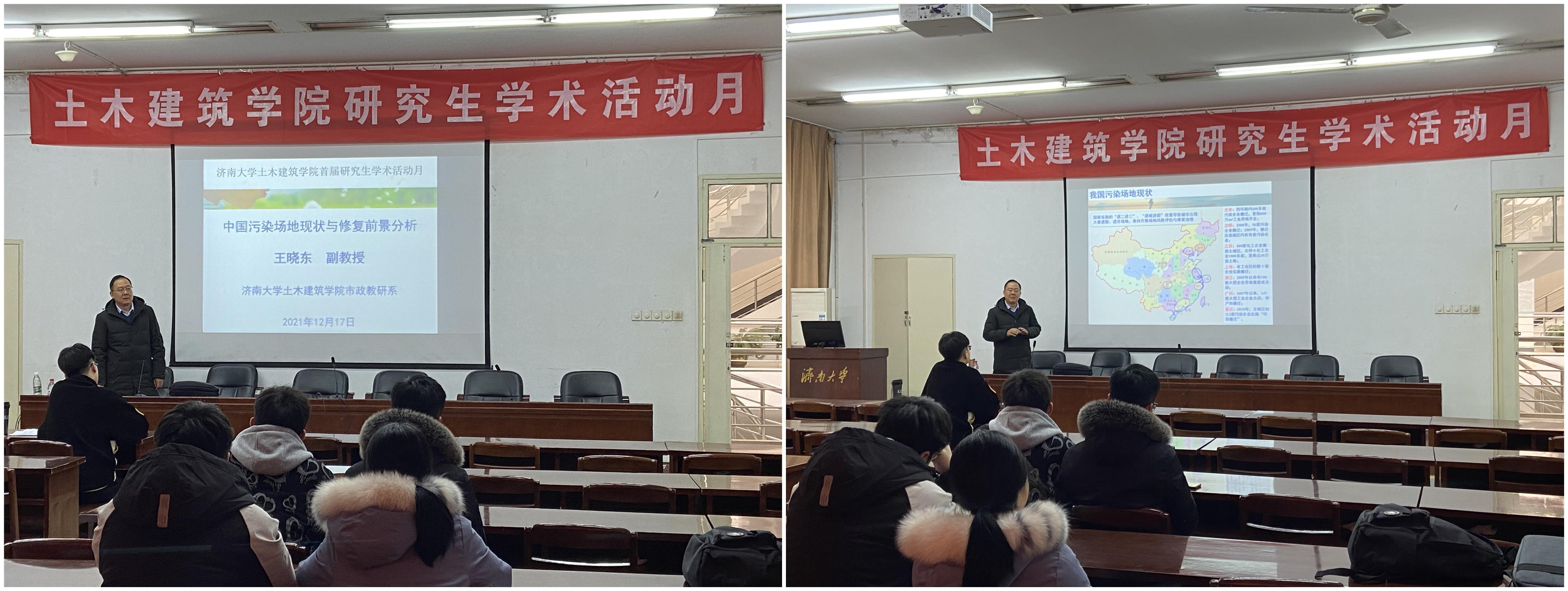 在本次学术报告中,王晓东老师首先做出题为“中国污染场地现状与修复前景分析”的主题报告,王晓东老师向在场师生介绍土壤修复的概况和简介、美国土壤修复和我国土壤修复对比等,通过介绍土壤修复的基础知识,让同学们对土壤修复的情况进行了一定的了解,王老师的报告对案例进行举例也引起了同学们的关注。随后王晓东老师分别对美国土壤修复的历史和相关措施进行了简要的概述,并与我国的土壤修复的措施进行了对比,总结出历史总是相似的,通过案例分析,让同学们对土壤修复有了更深一步的认识。之后,14位研究生就各自的研究成果做出相应报告,在报告中,同学们相互探讨,积极交流,学术氛围浓烈。