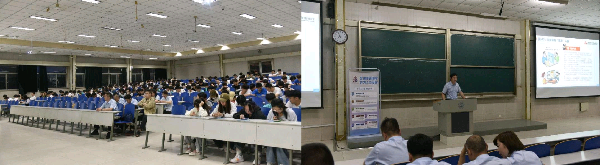 邀请济南农商银行润丰支行为22级学生做一堂防范电信网络诈骗知识讲座,通过以案说法、知识讲解、互动答疑等方式提升高校师生防诈反诈意识,筑牢校园反诈安全线。此次讲座由22级全体学生参加了此次讲座。