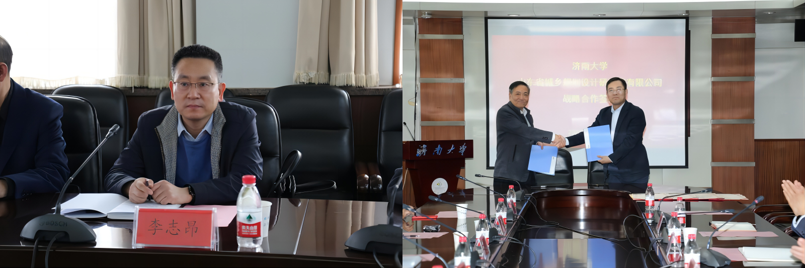 城乡规划学科和专业发展予以的长期支持表示感谢,并希望双方继续发挥各自资源优势、拓宽合作领域、促进优势互补,进一步在人才培养、社会服务、科研合作等方面实现全方位、深层次的交流与合作。我院院长谢群和山东省城乡规划设计研究院有限公司院长唐建平代表双方单位进行签约,省自然资源厅国土空间规划处副处长李志昂见证仪式。