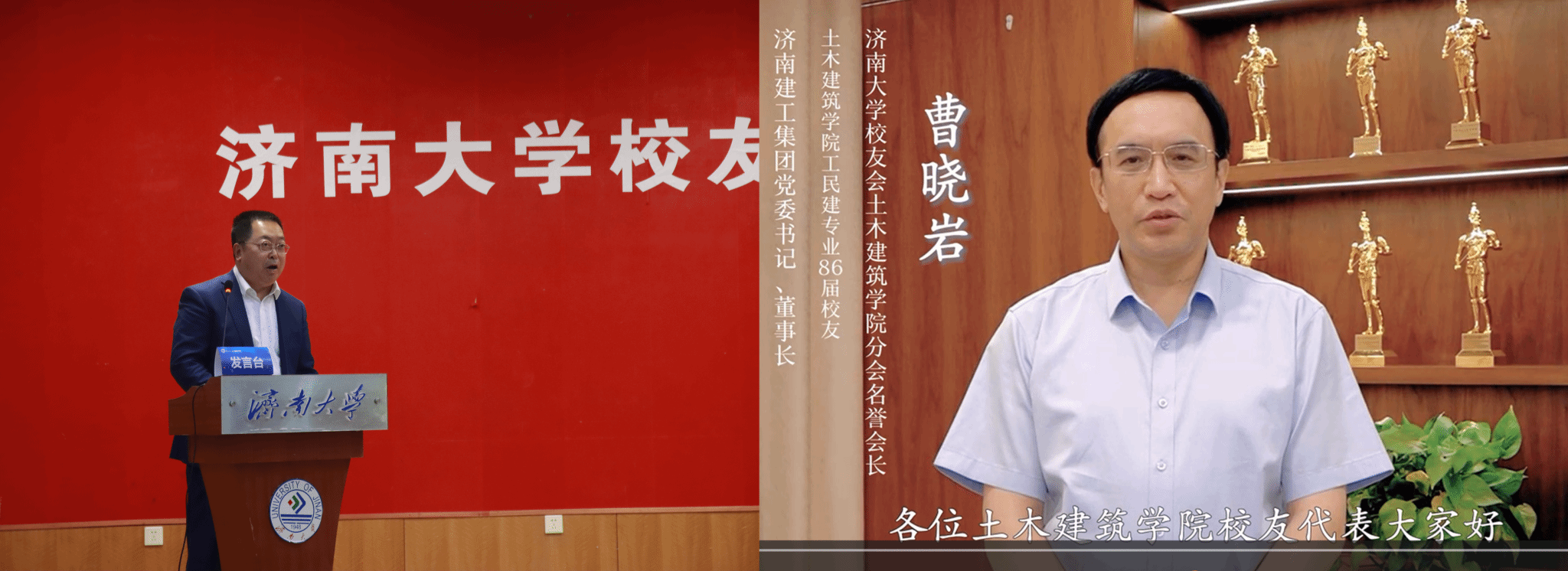校友会名誉会长、济南建工集团党委书记、董事长、86届校友曹晓岩通过视频讲话方式祝贺校友会成立,表示定将与校友共同努力,为母校和澳门娱乐城