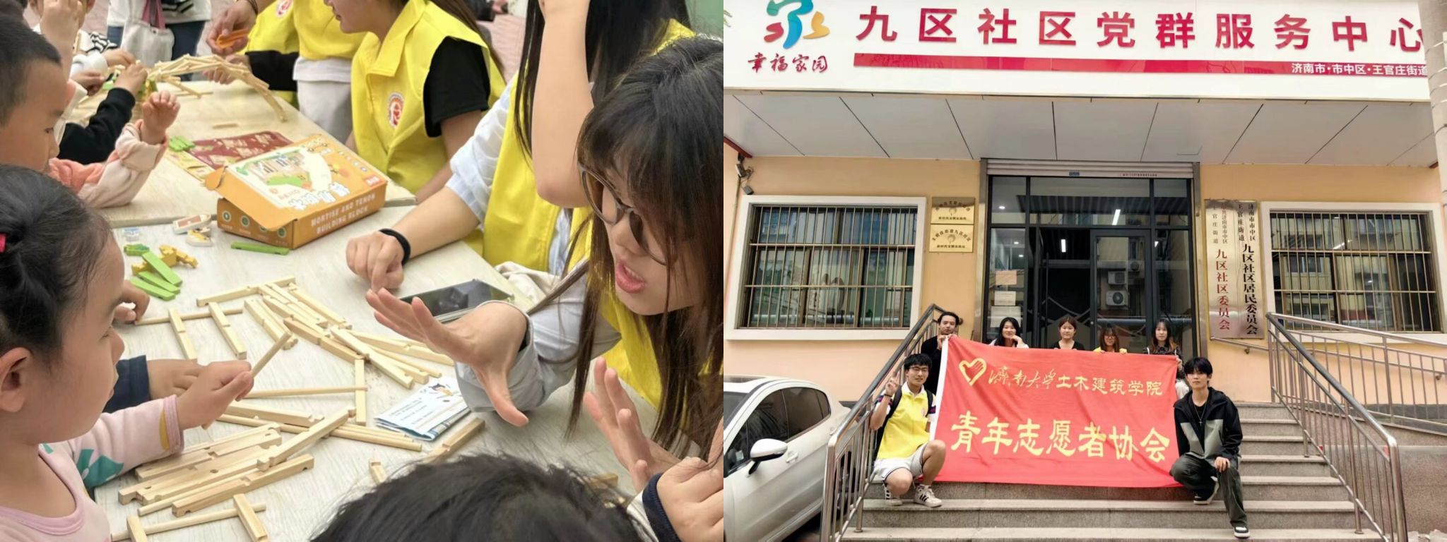 青年志愿者协会走进九区社区居委会广场,开展了一场以“童心筑梦,创意无限”为主题的互动活动。活动通过趣味积木搭建、污水处理装置演示及倍力桥模型制作等内容,为社区小朋友带来了一场别开生面的科普实践课。